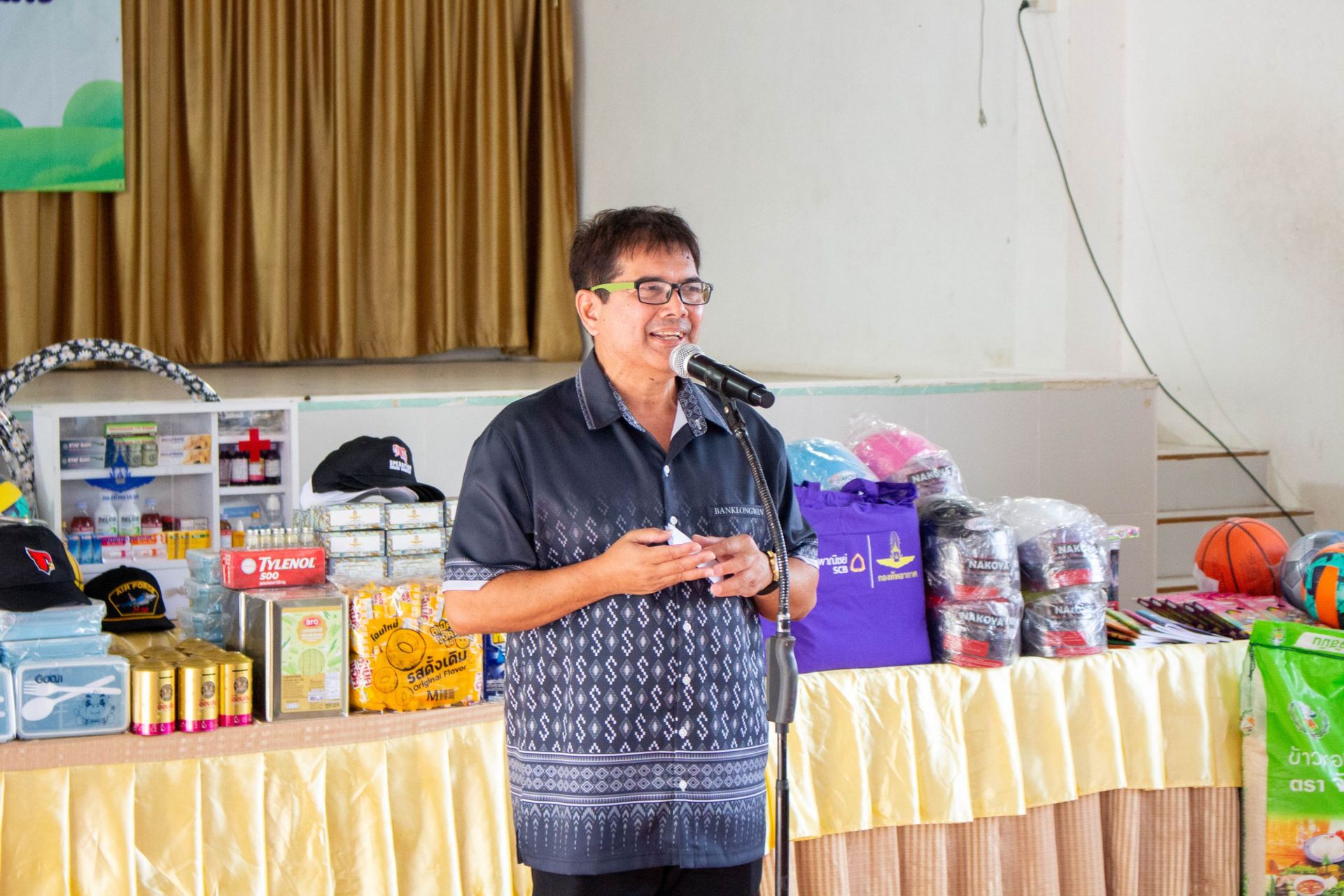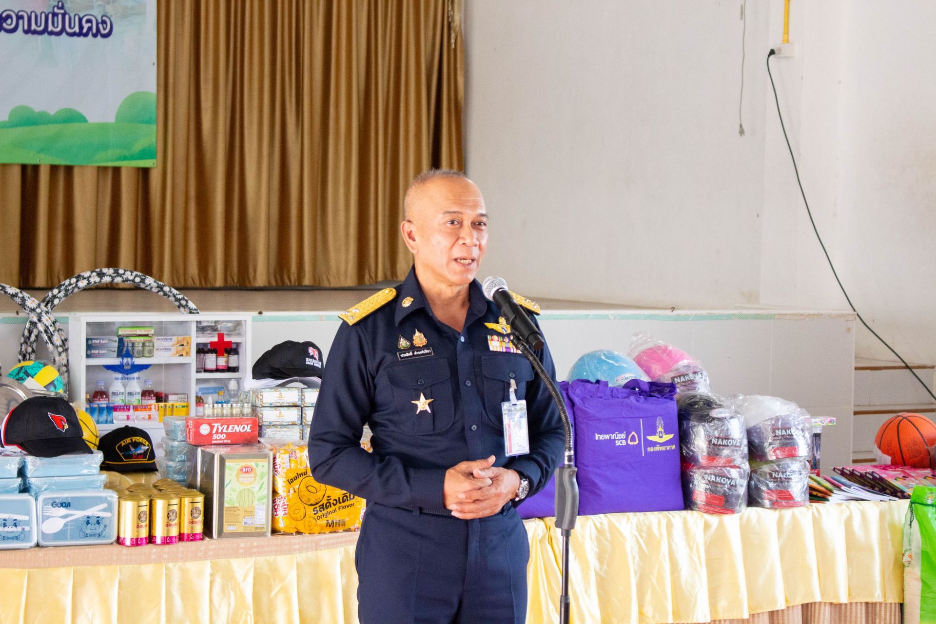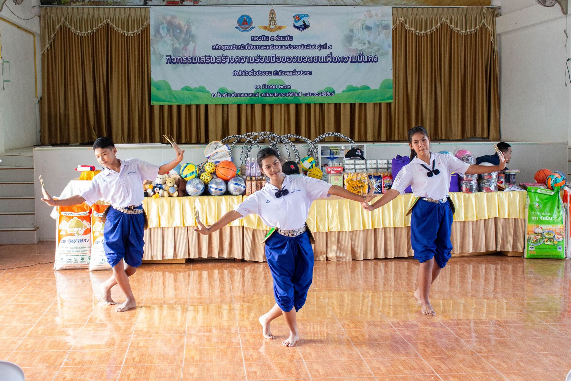 โอกาสนี้ นาวาอากาศเอก รัตนศักดิ์ โพธิ์แก้ว ผู้บังคับการกองบิน 5 และ ด็อกเตอร์ กรรณิกา โพธิ์แก้ว ประธานชมรมคู่สมรสทหารอากาศ กองบิน 5 ได้ร่วมมอบอุปกรณ์กีฬาและตู้ยาสามัญประจำบ้าน รวมทั้งสนับสนุนหน่วยมิตรประชา กองบิน 5 ในการร่วมกิจกรรม ประกอบด้วย