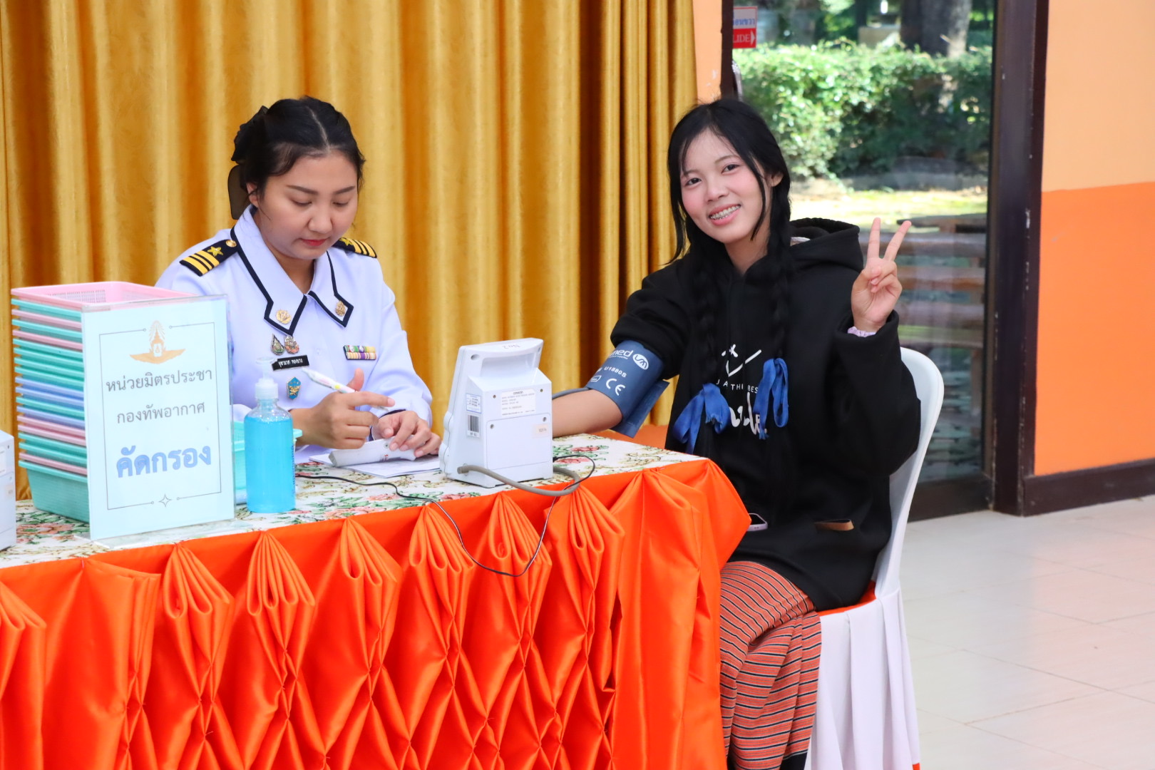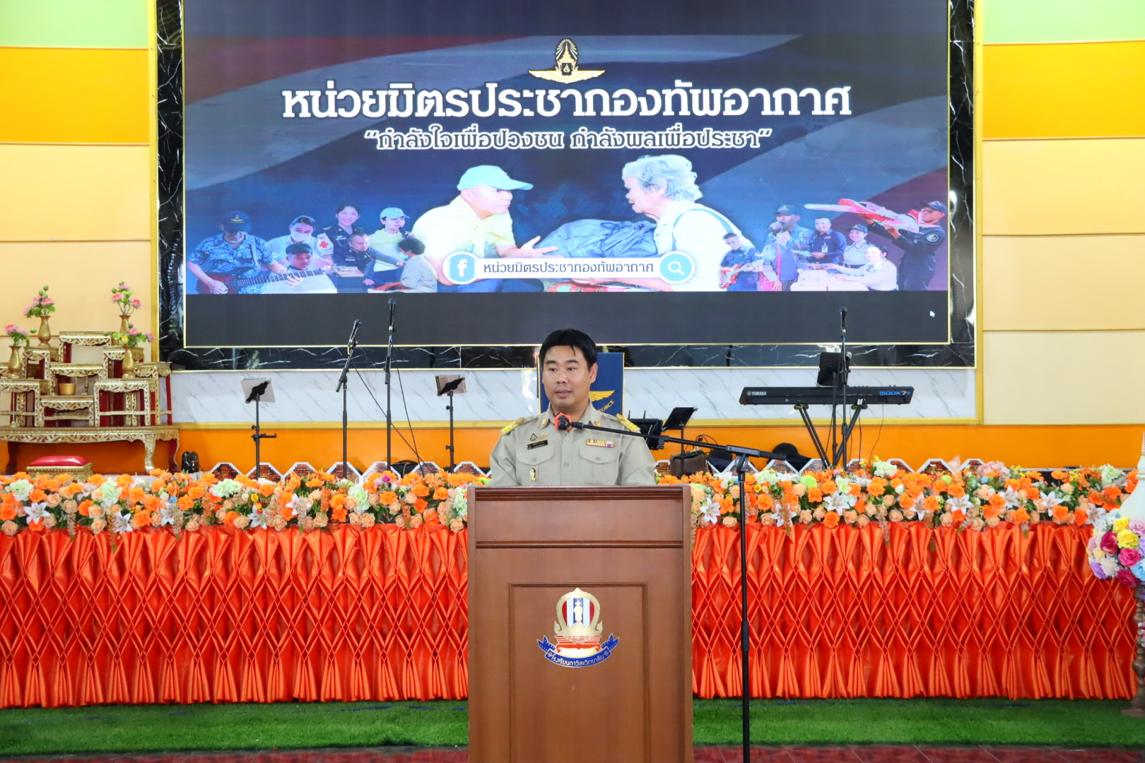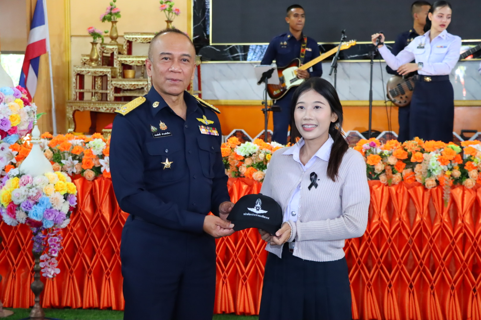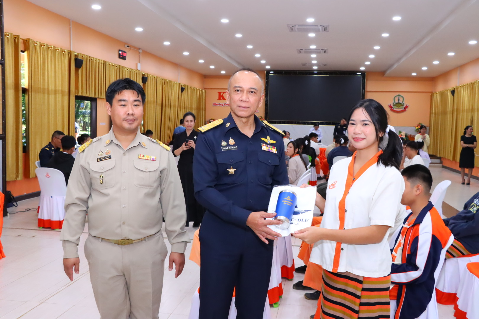 - มอบธงชาติไทย พระบรมฉายาลักษณ์ ตู้ยาพร้อมยาสามัญประจำบ้าน ผ้าห่มกันหนาว พัดลมอุตสาหกรรม ลำโพงเคลื่อนที่ วารสารของกองทัพอากาศ อุปกรณ์การศึกษา และอุปกรณ์กีฬา