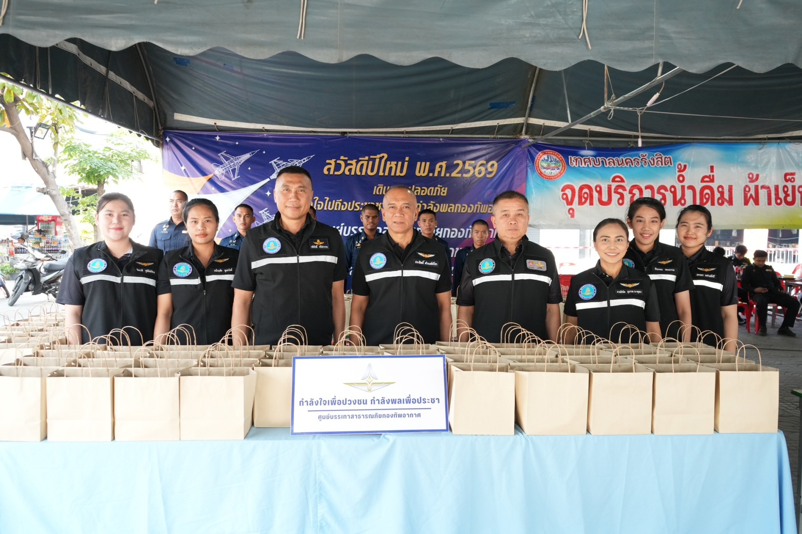เมื่อวันที่ 1 มกราคม 2569 พลอากาศโท ประสิทธิ์ ดำรงค์ปรีชา เจ้ากรมกิจการพลเรือนทหารอากาศ พร้อมด้วยเจ้าหน้าที่ ศูนย์บรรเทาสาธารณภัยกองทัพอากาศ ให้บริการประชาชน ภายใต้โครงการ "ขับขี่ปลอดภัย ลดความเร็ว ลดอุบัติเหตุ" ในเทศกาลปีใหม่ ประจำปี 2569 โดยได้ลงพื้นที่ให้บริการประชาชน ได้แก่ การมอบข้าวกล่อง 200 กล่อง น้ำดื่ม น้ำอัดลม เครื่องดื่มชูกำลัง ลูกอม และ ผ้าเย็น พร้อมทั้งบริการให้ข้อมูลการสอบถามเส้นทางรถ ฯลฯ ณ จุดบริการประชาชนบริเวณท่าจอดรถขาออกต่างจังหวัด(ตรงข้ามศูนย์การค้าฟิวเจอร์พาร์ค รังสิต) อำเภอธัญบุรี จังหวัดปทุมธานี
