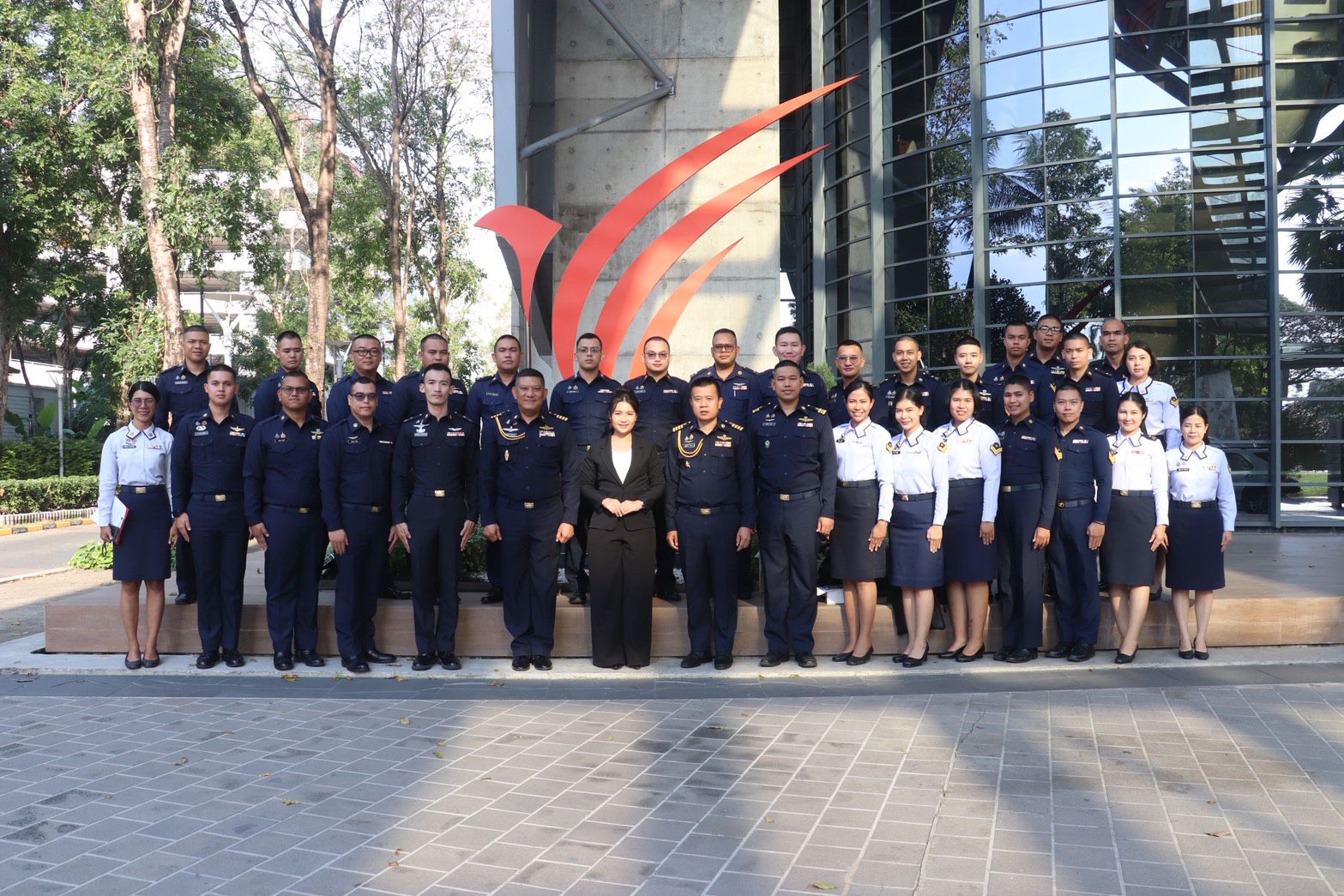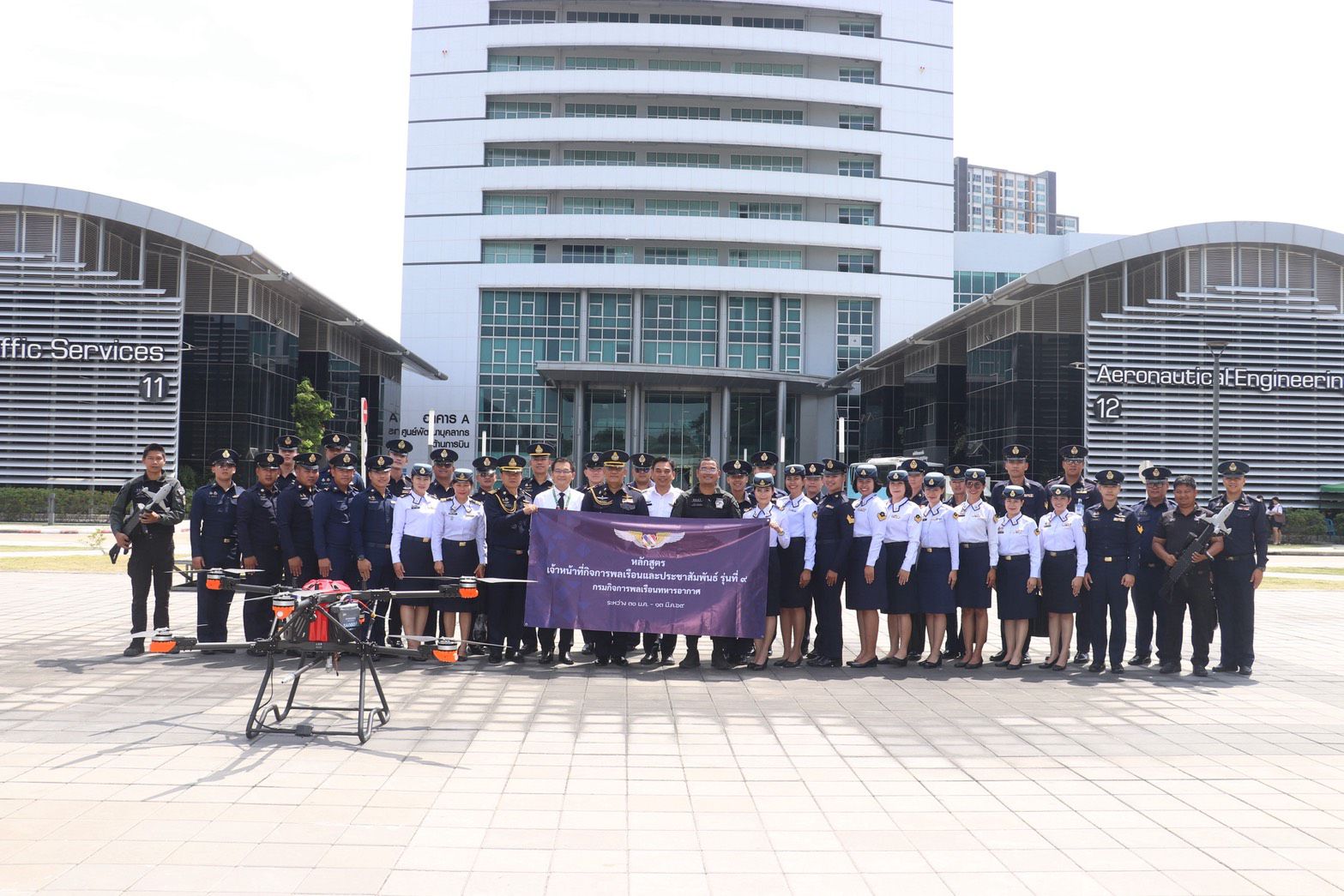 นาวาอากาศเอก ภาณุวัตร เรืองประยูร รองผู้อำนวยการสำนักนโยบายและแผนกรมกิจการพลเรือนทหารอากาศ พร้อมด้วย นาวาอากาศเอก ณัฐนันท์ ยืนยง รองผู้อำนวยการกองนโยบายและแผนสำนักนโยบายและแผนกรมกิจการพลเรือนทหารอากาศ นำคณะ นทน.หลักสูตรเจ้าหน้าที่กิจการพลเรือนและประชาสัมพันธ์ รุ่นที่ 9 ศึกษาดูงาน : การปฏิบัติงานของผู้บังคับอากาศยานซึ่งไม่มีนักบินในระยะสายตาสำหรับการบรรเทาสาธารณภัย ณ สถาบันการบินพลเรือน