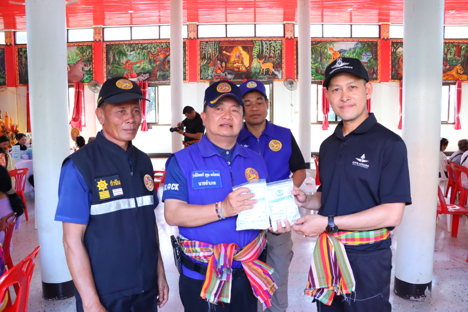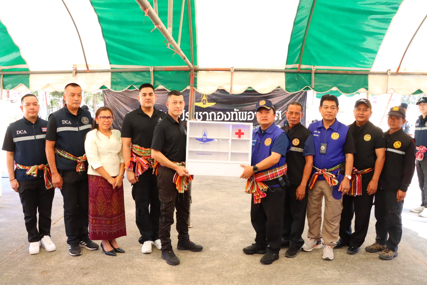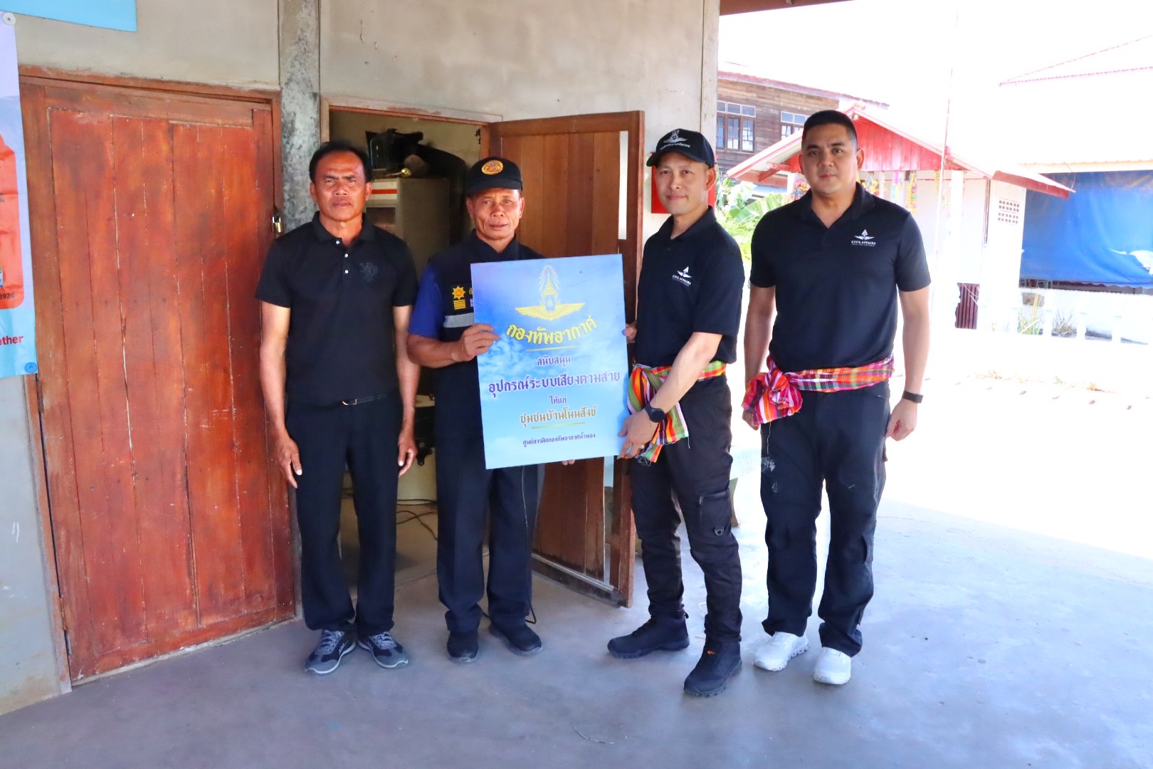 - มอบธงชาติไทย พระบรมฉายาลักษณ์ สมุดลงนามถวายความอาลัย ตู้ยาพร้อมชุดยาสามัญประจำบ้าน ชุดลำโพงกระจายเสียง