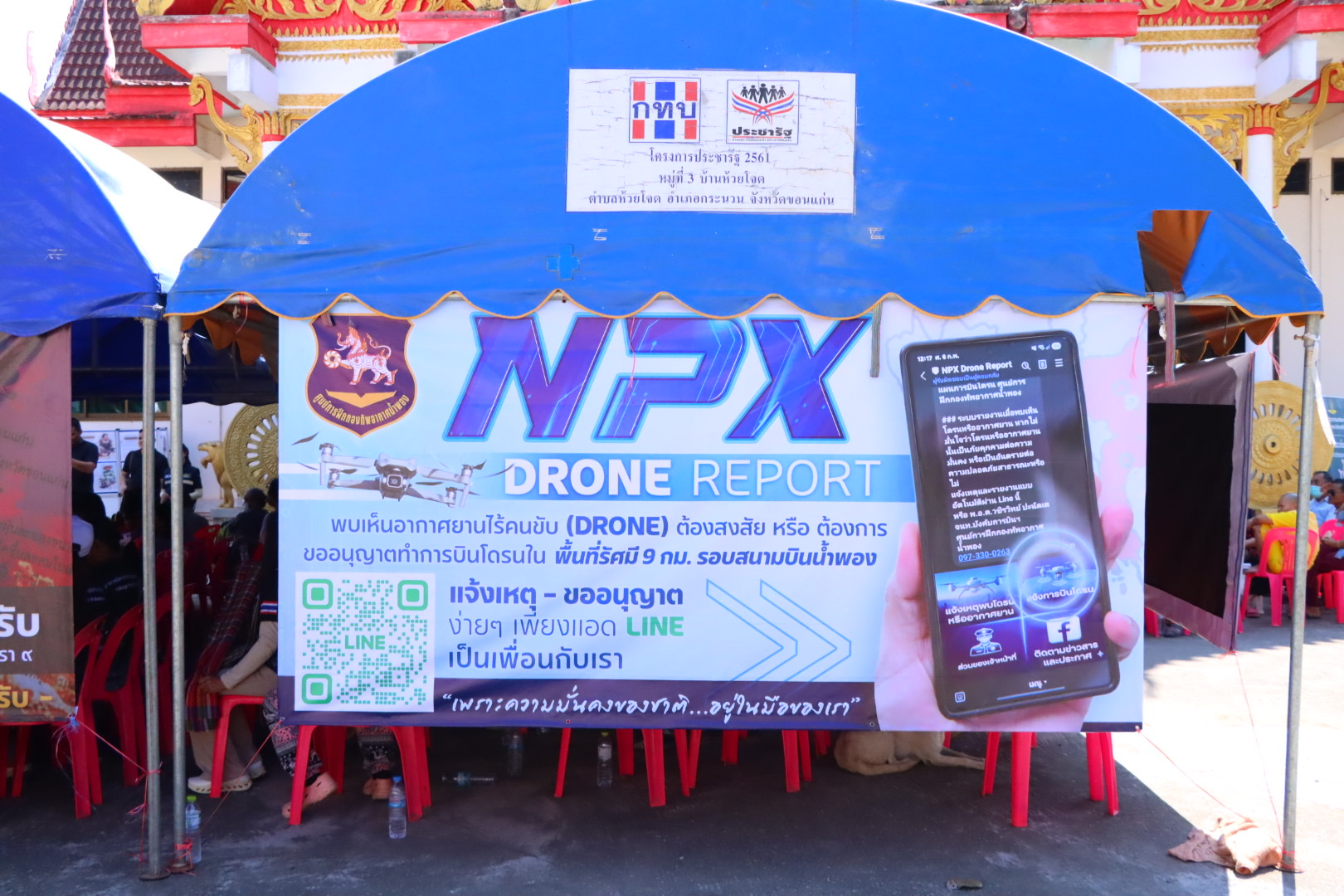 - ป้ายประชาสัมพันธ์และให้ความรู้เกี่ยวกับอากาศยานไร้คนขับ (Drone) และการเฝ้าระวัง สำหรับประชาชนในพื้นที่