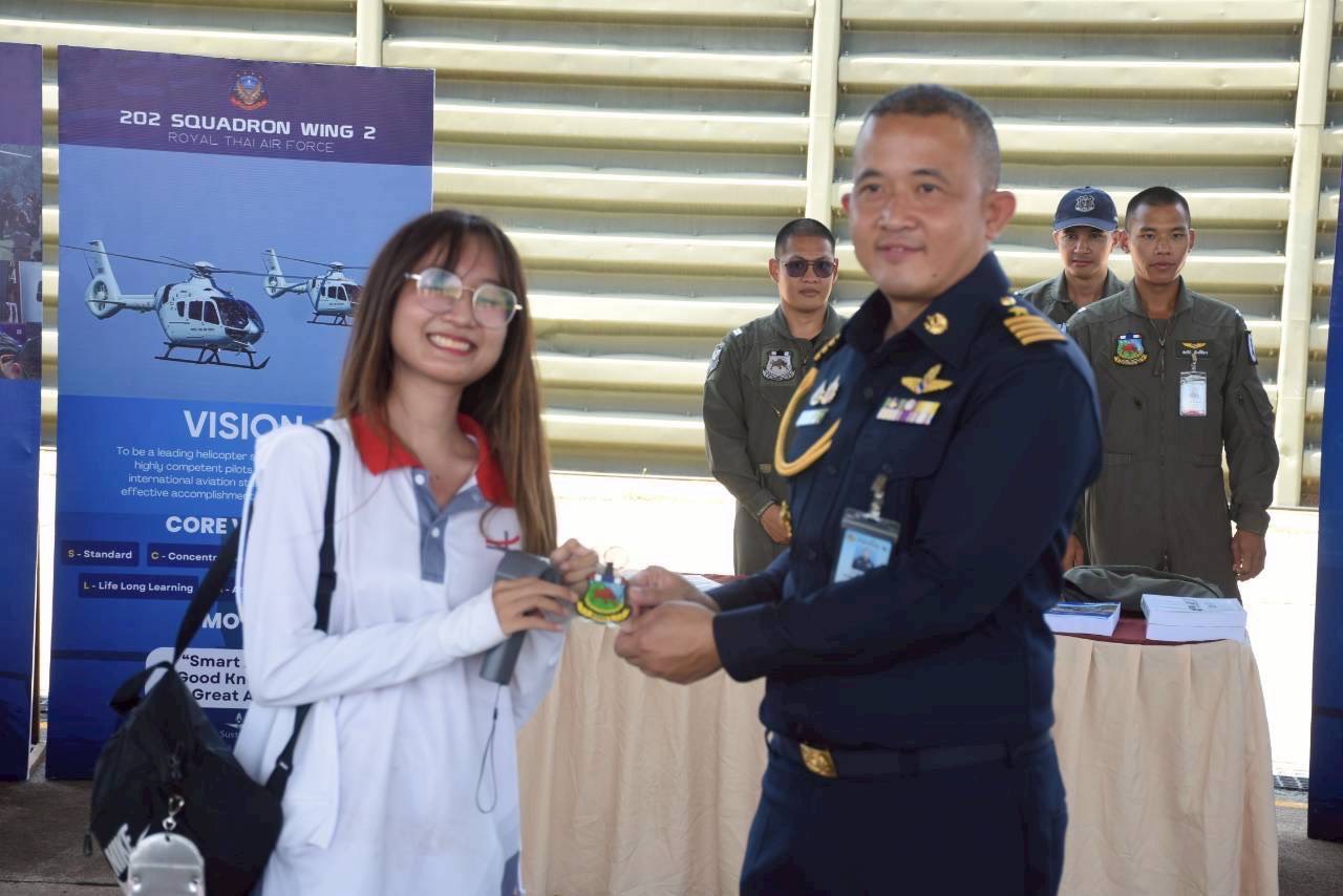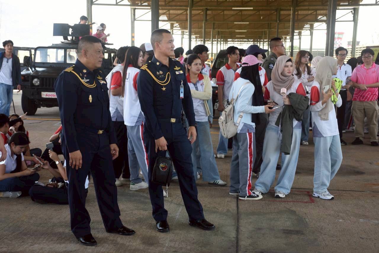 เทพพิรักษ์ ฮ่อธิวงศ์ ผู้อำนวยการกองนโยบายและแผน สำนักนโยบายและแผน กรมกิจการพลเรือนทหารอากาศ และนาวาอากาศเอก ธนภัทร สุนทรนนท์ เสนาธิการกองบิน 2 เป็นผู้แทน ผู้บังคับการกองบิน 2 พร้อมนายทหารชั้นผู้ใหญ่ ให้การต้อนรับ นาวาเอก รัฐนินท์ เมธีวัชรพัฒน์ รองผู้อำนวยการสำนักการศึกษาทหาร สถาบันวิชาการป้องกันประเทศ คณะอาจารย์ และนิสิตนักศึกษา จาก 2 สถาบัน ประกอบด้วย จุฬาลงกรณ์มหาวิทยาลัย และมหาวิทยาลัยศรีนครินทรวิโรฒ ประสานมิตร ในหลักสูตรวิชาวิทยาการทหาร ภาคเรียนที่ 2 ปีการศึกษา 2568 เยี่ยมชมกิจการกองทัพอากาศ ณ กองบิน 2 อำเภอเมืองลพบุรี จังหวัดลพบุรี