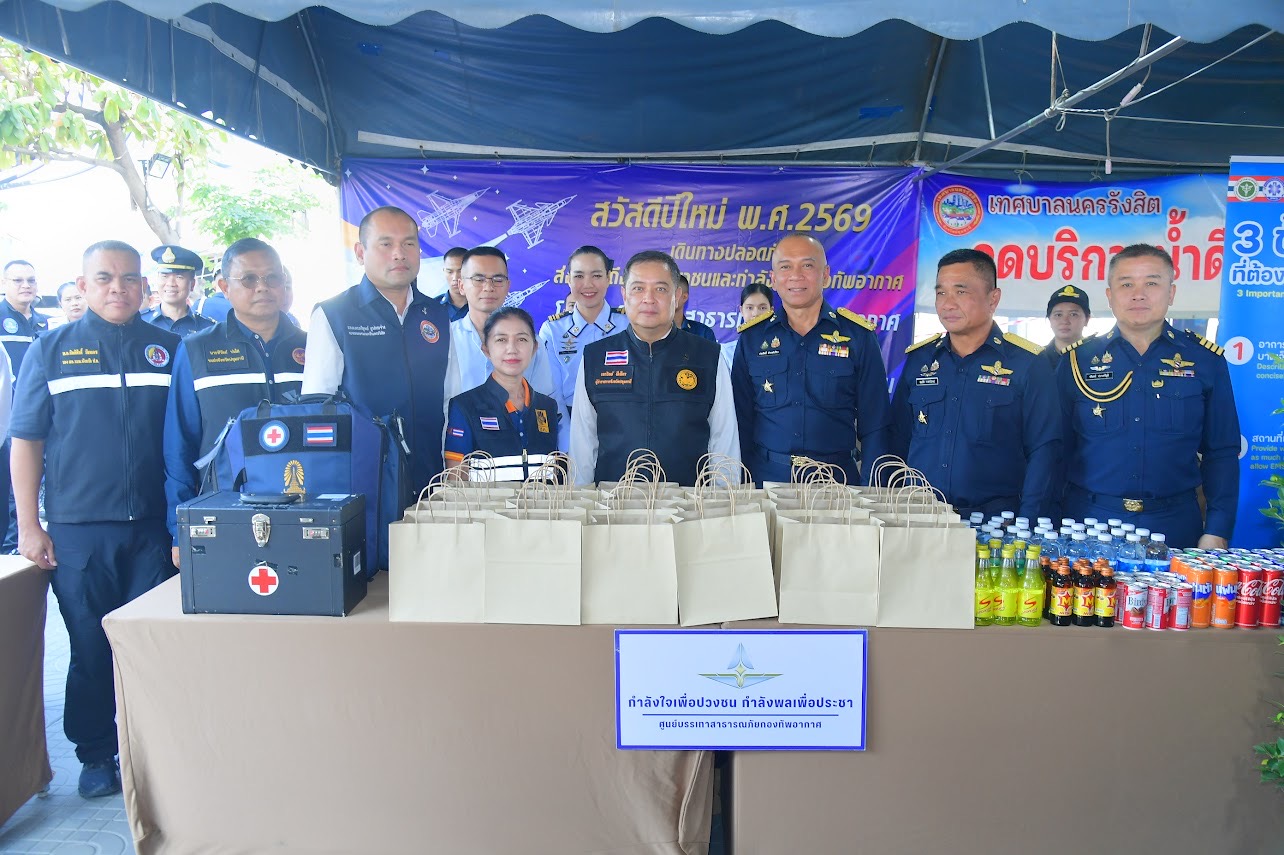 เมื่อวันอังคารที่ 30 ธันวาคม 2568 พลอากาศโท ประสิทธิ์ ดำรงค์ปรีชา เจ้ากรมกิจการพลเรือนทการอากาศ ผู้แทนผู้บัญชาการทหารอากาศ ในฐานะผู้อำนวยการศูนย์ปฏิบัติการพลเรือนทหาร ศูนย์บรรเทาสาธารณภัยกองทัพอากาศ พร้อมนายเอกวิทย์ มีเพียร ผู้ว่าราชการจังหวัดปทุมธานี เป็นประธานร่วมในพิธีเปิดศูนย์ปฏิบัติการป้องกันและลดอุบัติเหตุทางถนนช่วงเทศกาลปีใหม่ พุทธศักราช 2569 โดยมีร้อยตำรวจเอก ดร.ตรีลุพธ์ ธูปกระจ่าง นายกเทศมนตรีนครรังสิต คุณสุพีพร โมรา หัวหน้าสำนักงานป้องกันและบรรเทาสาธารณภัยจังหวัดปทุมธานี นายทหารชั้นผู้ใหญ่กองทัพอากาศ ผู้แทนจากบริษัทไทยเบฟเวอเรจ จำกัด (มหาชน) และเจ้าหน้าที่จากทุกภาคส่วน ร่วมพิธีเปิด ณ บริเวณตลาดกินซ่า ท่าจอดรถขาออกต่างจังหวัด (ตรงข้ามศูนย์การค้าฟิวเจอร์พาร์ครังสิต) ตำบลประชาธิปัตย์ อำเภอธัญบุรี จังหวัดปทุมธานี
