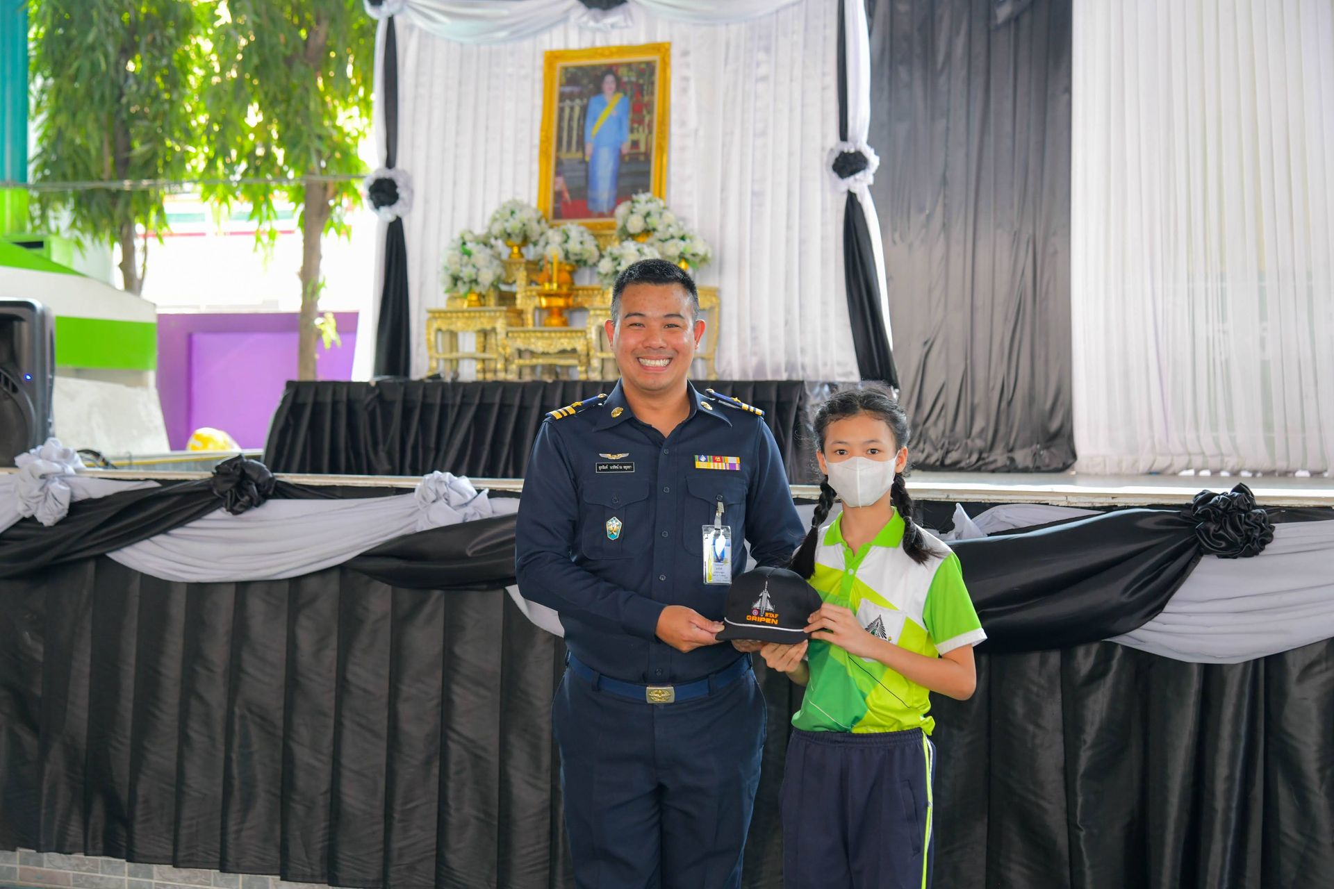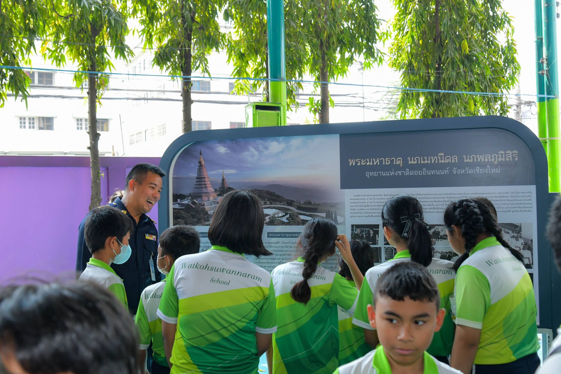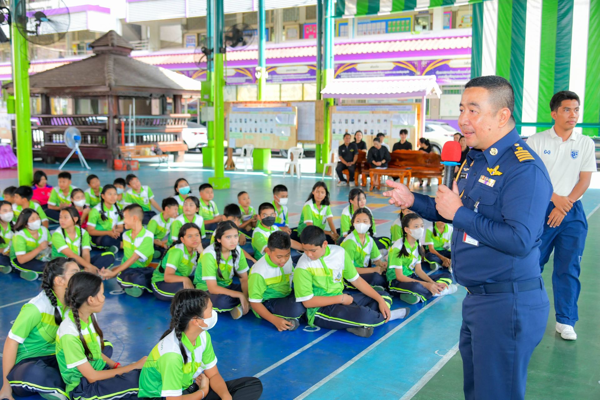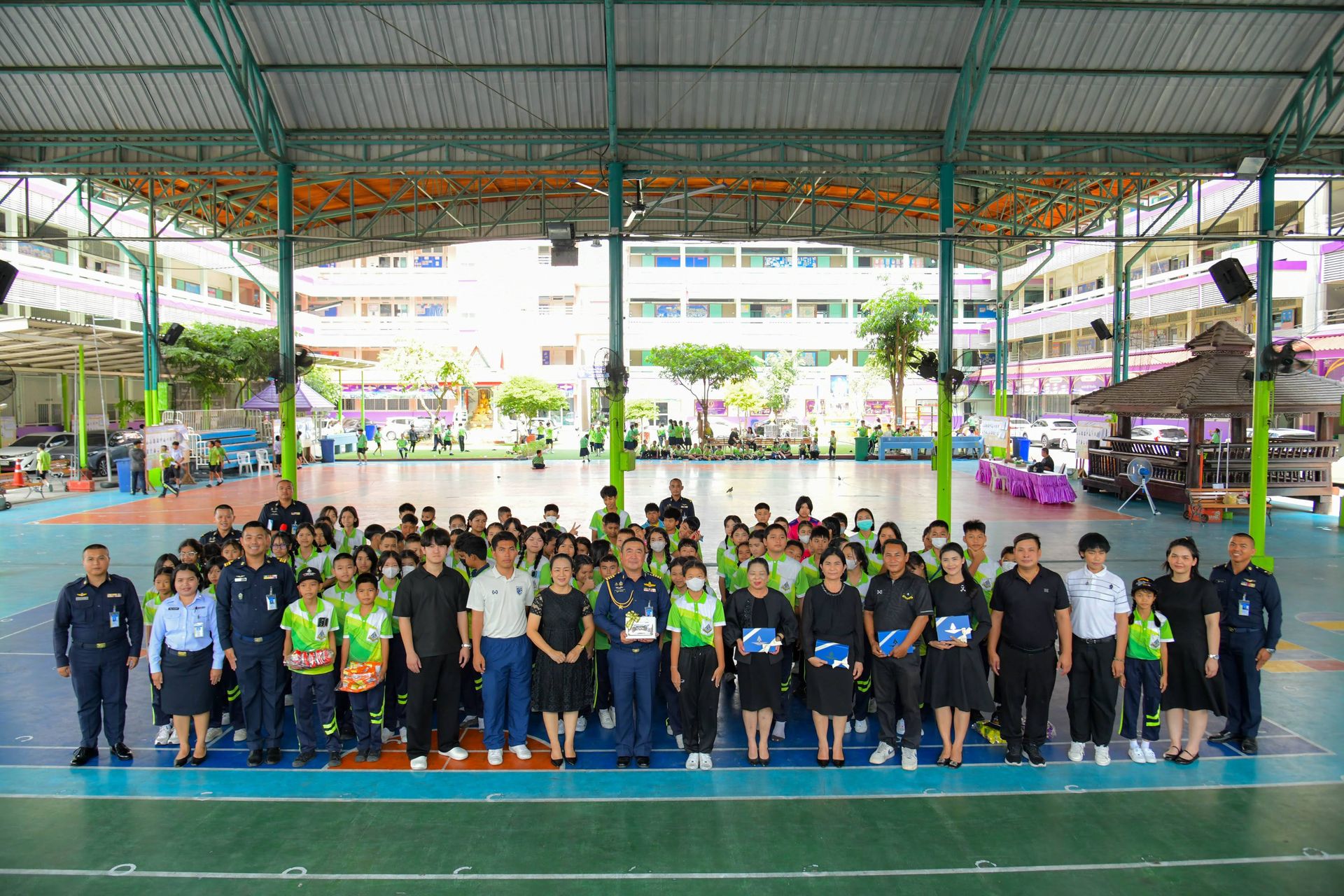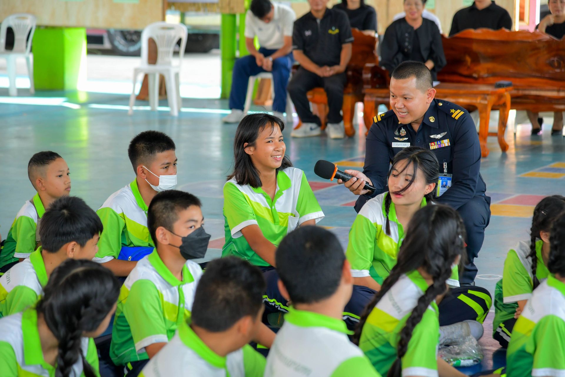 สำนักกิจการพลเรือนและประชาสัมพันธ์ กรมกิจการพลเรือนทหารอากาศ ในฐานะผู้แทนกรมกิจการพลเรือนทหารอากาศ นำกำลังพลลงพื้นที่ จัดกิจกรรมนิทรรศการเคลื่อนที่ เพื่อสร้างการรับรู้เพื่อความมั่นคงของสถาบันหลักของชาติ โดยมี ดร.ศิริพร สลีวงศ์ ผู้อำนวยการโรงเรียนวัดเกาะสุวรรณาราม