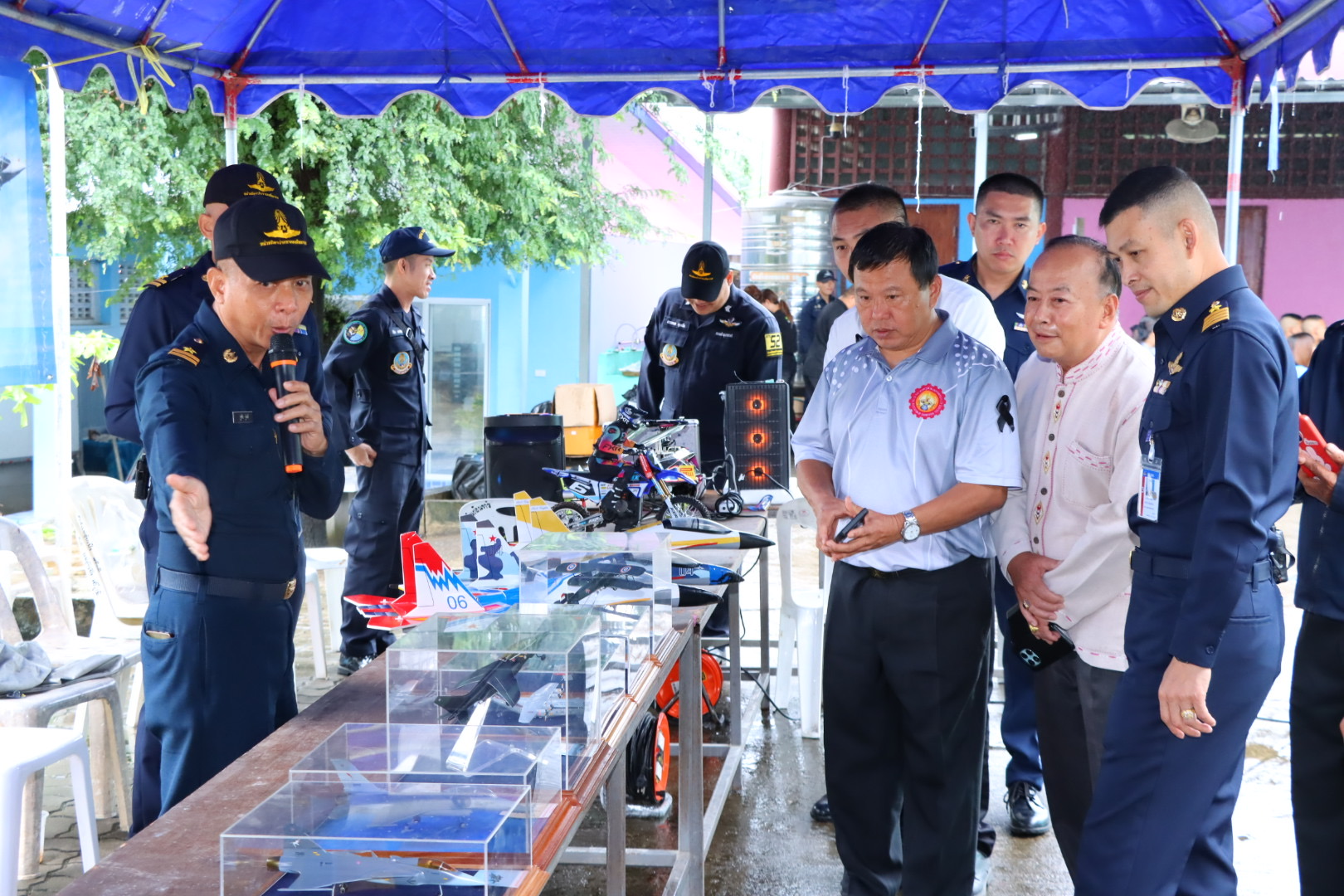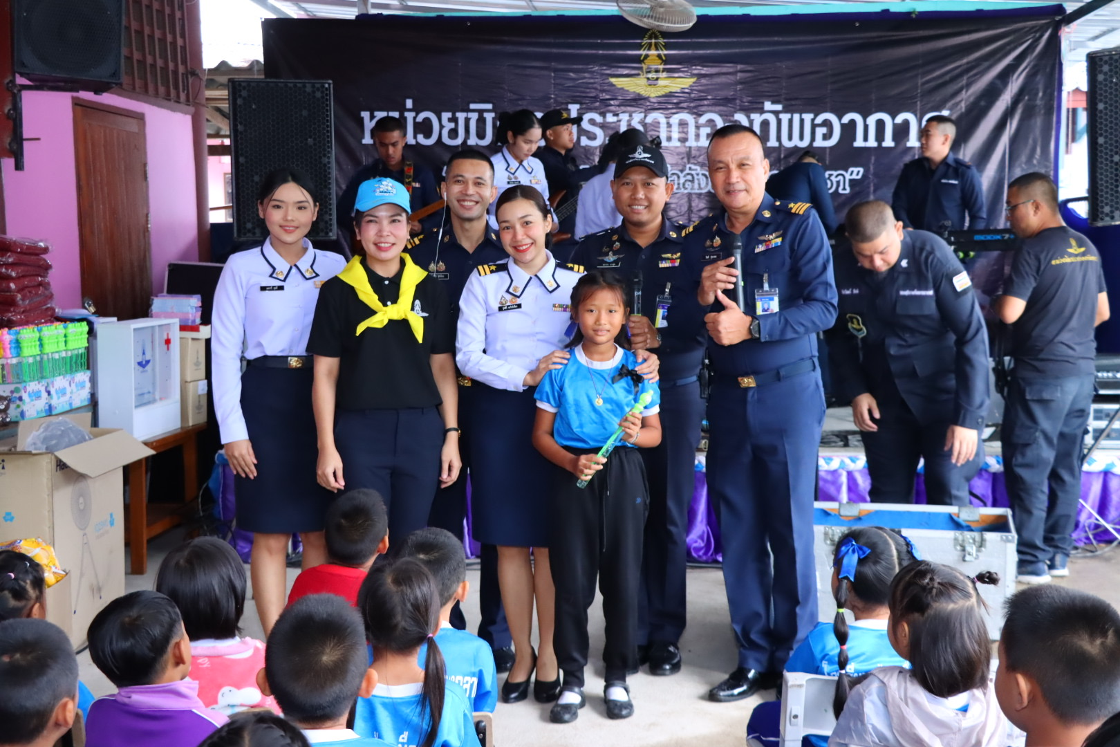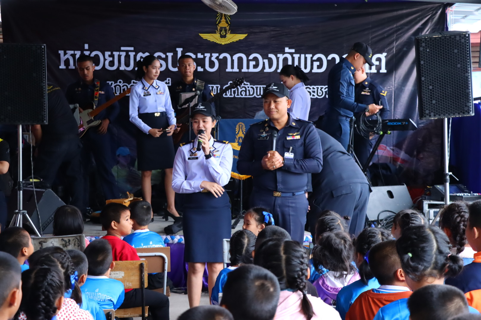 - มอบธงชาติไทย พระบรมฉายาลักษณ์ ตู้ยาพร้อมยาสามัญประจำบ้าน ผ้าห่มกันหนาว เครื่องกรองน้ำดื่ม พัดลมอุตสาหกรรม ลำโพงเคลื่อนที่ วารสารของกองทัพอากาศ อุปกรณ์การศึกษา และอุปกรณ์กีฬา