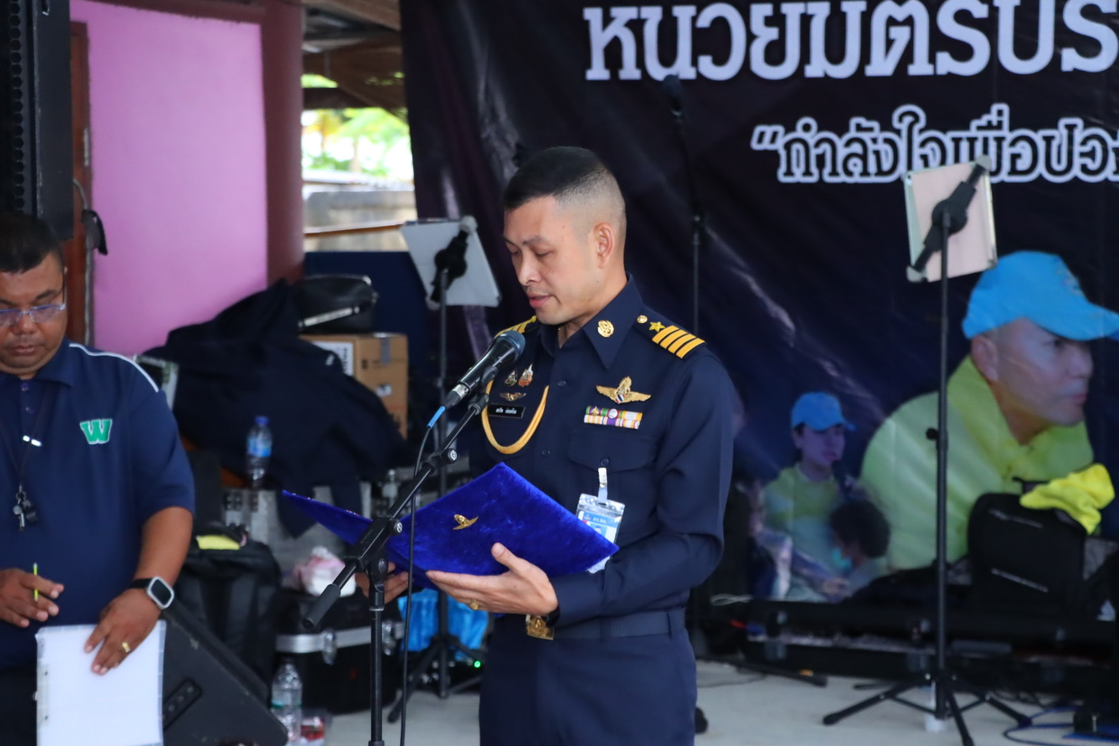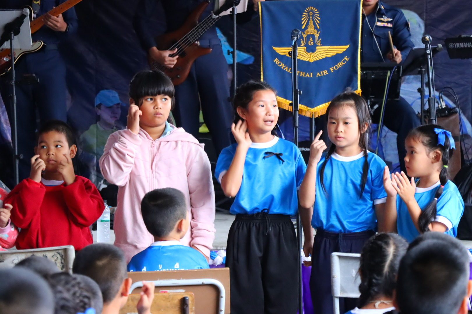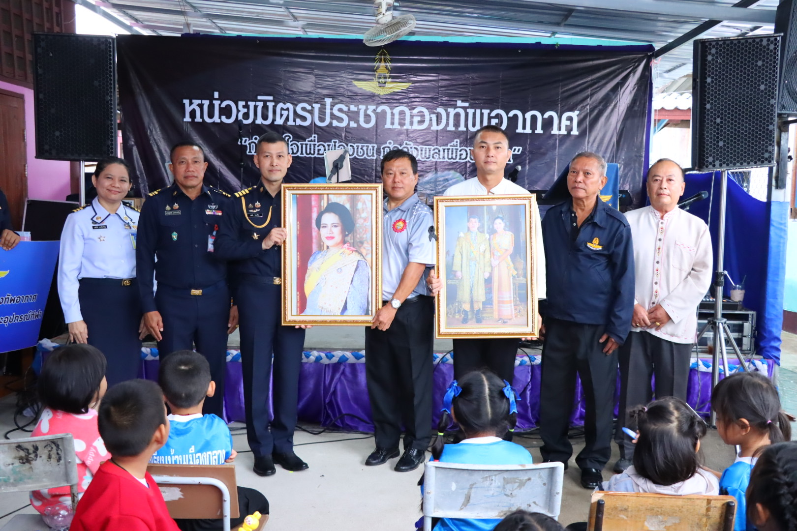 - มอบธงชาติไทย พระบรมฉายาลักษณ์ ตู้ยาพร้อมยาสามัญประจำบ้าน ผ้าห่มกันหนาว เครื่องกรองน้ำดื่ม พัดลมอุตสาหกรรม ลำโพงเคลื่อนที่ วารสารของกองทัพอากาศ อุปกรณ์การศึกษา และอุปกรณ์กีฬา