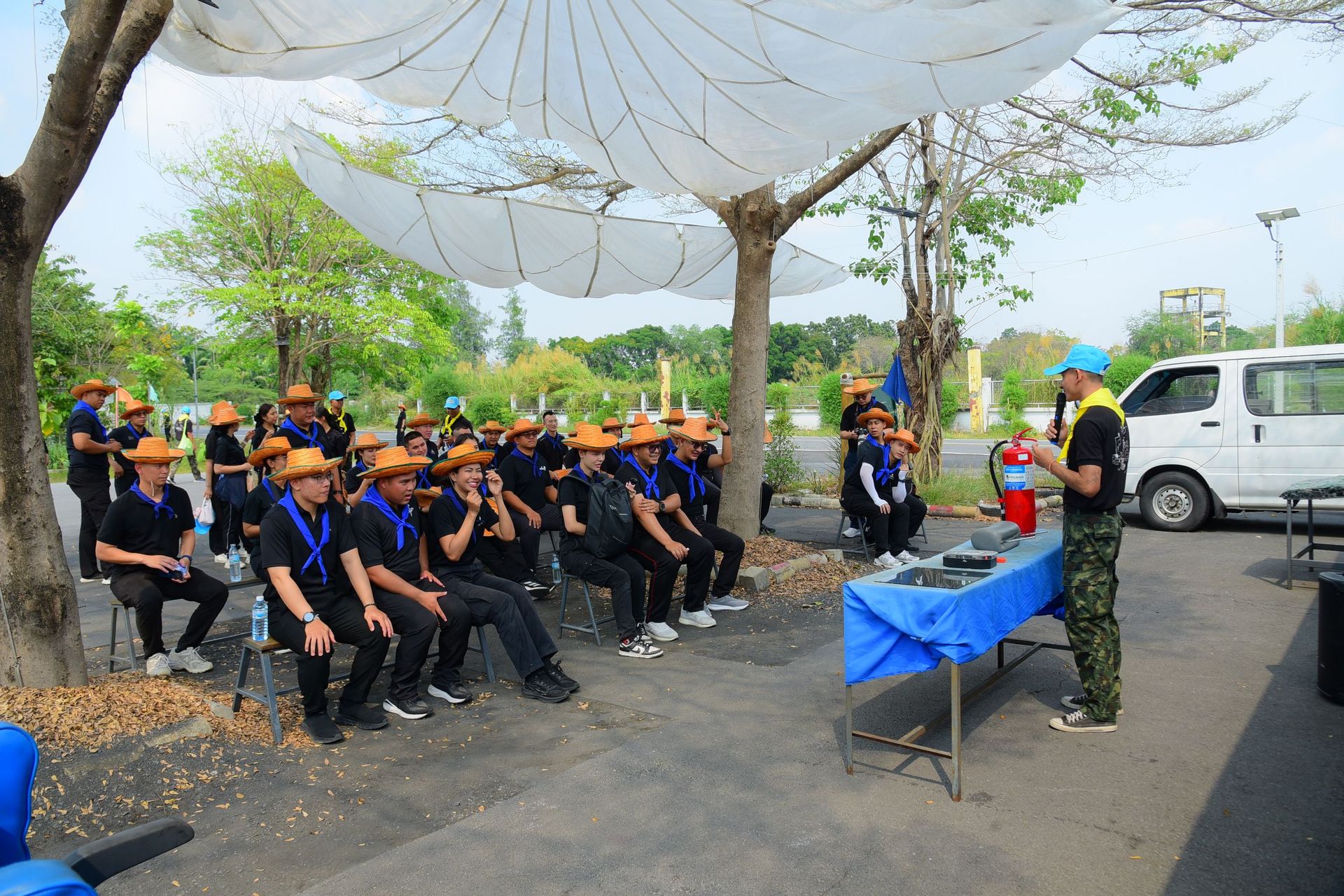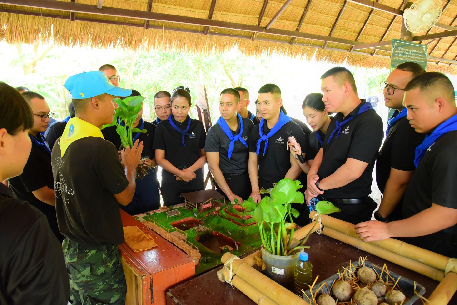 นาวาอากาศเอกภาณุวัตร เรืองประยูร รองผู้อำนวยการสำนักนโยบายและแผนกรมกิจการพลเรือนทหารอากาศ นำคณะ นทน.หลักสูตรเจ้าหน้าที่กิจการพลเรือนและประชาสัมพันธ์ รุ่นที่ 9 ศึกษาดูงานในกิจกรรม Daytrip C รับฟังบรรยายการแก้ปัญหาตามภูมิสังคม และฝึกปฏิบัติการเอาตัวรอดในภาวะวิกฤติ