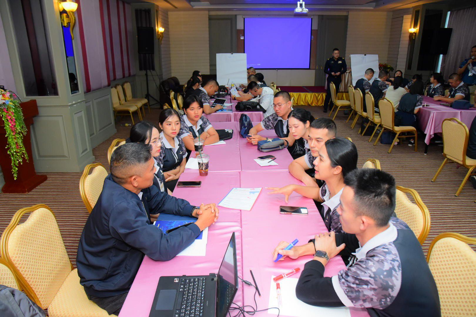 จากนั้น แบ่งกลุ่มสัมมนาเพื่อผลิตสื่อประชาสัมพันธ์ตามแบบฝึกในหัวข้อ "รวมใจไทย สื่อสารความสำคัญสถาบันในพระมหากรุณาธิคุณ (Storytelling for National Pride and Unity)"