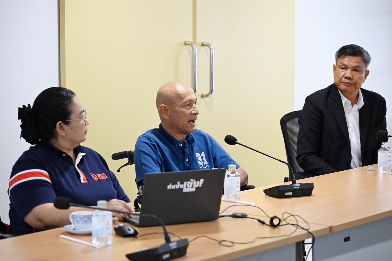 นาวาอากาศเอก จรินทร์ ปราบศรีภูมิ รองผู้อำนวยการสำนักนโยบายและแผน กรมกิจการพลเรือนทหารอากาศ ผู้แทนศูนย์ปฏิบัติการพลเรือนทหาร ศูนย์บรรเทาสาธารณภัยกองทัพอากาศ ร่วมกับ พลอากาศเอก วรกฤต มุขศรี และ พลอากาศเอก วิธูร ขำเจริญ ที่ปรึกษามูลนิธิพัฒนาศักยภาพคนพิการ พร้อมด้วย พลอากาศตรี ภราดร คุ้มทรัพย์ ประธานมูลนิธิพัฒนาศักยภาพคนพิการ รับมอบรถเข็นสำหรับผู้พิการ จำนวน 50 คัน จากคุณขรรค์ ประจวบเหมาะ ผู้อำนวยการสำนักงานจัดหารายได้ สภากาชาดไทย และนางจันทร์ประภา วิชิตชลชัย รองผู้อำนวยการสำนักงานจัดหารายได้ สภากาชาดไทย เพื่อสนับสนุนและช่วยเหลือผู้พิการในพื้นที่ชายแดนใต้ ให้มีคุณภาพชีวิตที่ดีขึ้น ณ สำนักงานจัดหารายได้ สภากาชาดไทย ในวันพฤหัสบดีที่ 19 มีนาคม 2569