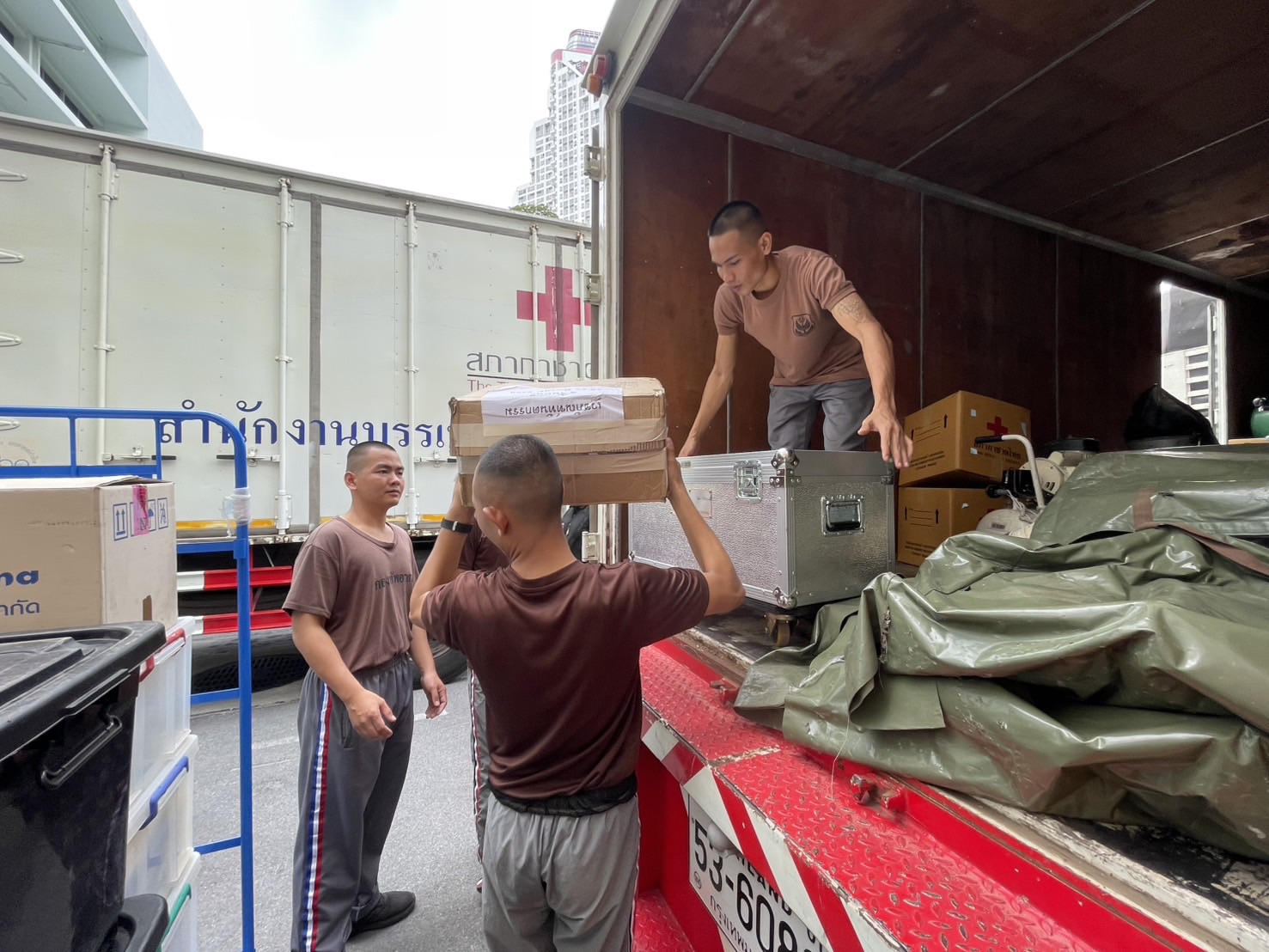 ศูนย์ปฏิบัติการพลเรือนทหาร ศูนย์บรรเทาสาธารณภัยกองทัพอากาศ และกรมปฏิบัติการพิเศษ หน่วยบัญชาการอากาศโยธิน จัดเจ้าหน้าที่ และทหารกองประจำการ พร้อมผู้ควบคุม ร่วมปฏิบัติงานจัดเตรียมสิ่งของอุปโภคบริโภค ชุดที่นอน อุปกรณ์การแพทย์ ฯลฯ ขึ้น-ลงรถยนต์บรรทุกขนส่ง เพื่อลำเลียงความช่วยเหลือไปฟื้นฟูผู้ประสบอุทกภัยในพื้นที่ภาคใต้ตอนล่าง ระหว่างวันจันทร์ที่ 30 - วันอังคารที่ 31 มีนาคม 2569 ณ คลังสัมภาระผู้ประสบภัย สำนักงานบรรเทาทุกข์และประชาอนามัยพิทักษ์ สภากาชาดไทย ถนนอังรีดูนังต์ เขตปทุมวัน กทม.